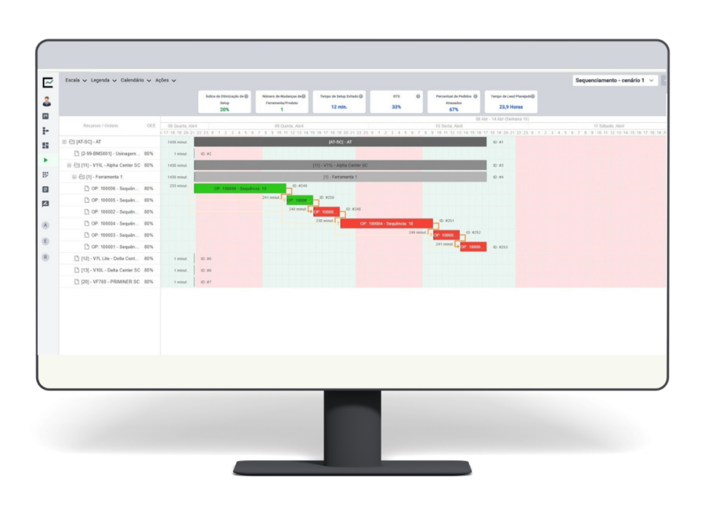 Visualização Clara: O gráfico de Gantt dinâmico oferece uma visualização intuitiva do processo de produção, facilitando a identificação de oportunidades de melhoria.